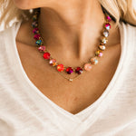 The TOVA The Sofia Necklace in Flamingo Mix features a delicate design with radiant tones that bring a light, feminine touch to any outfit. Perfect for layering or wearing on its own, this necklace adds an effortless hint of color and shine to both everyday looks and dressier moments.