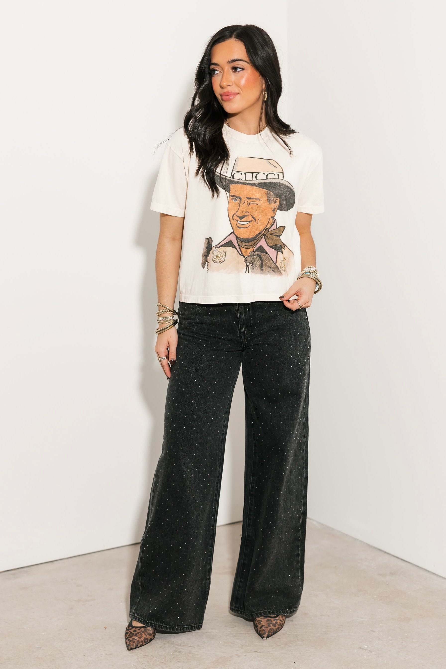 The Daze The Wanderer Wide Leg Jeans in Starlight Night feature a flattering mid-rise waist and wide-leg silhouette, finished with festive stud detailing throughout. Comfortable yet eye-catching, they’re perfect for adding sparkle and personality to any outfit.