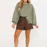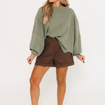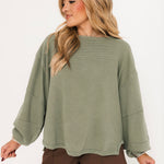 An elevated take on the classic tee, this long-sleeve from our We The Free collection features a ribbed fabrication and slouchy silhouette with defined seams and a scoop-neckline. Lexi is wearing an xs.