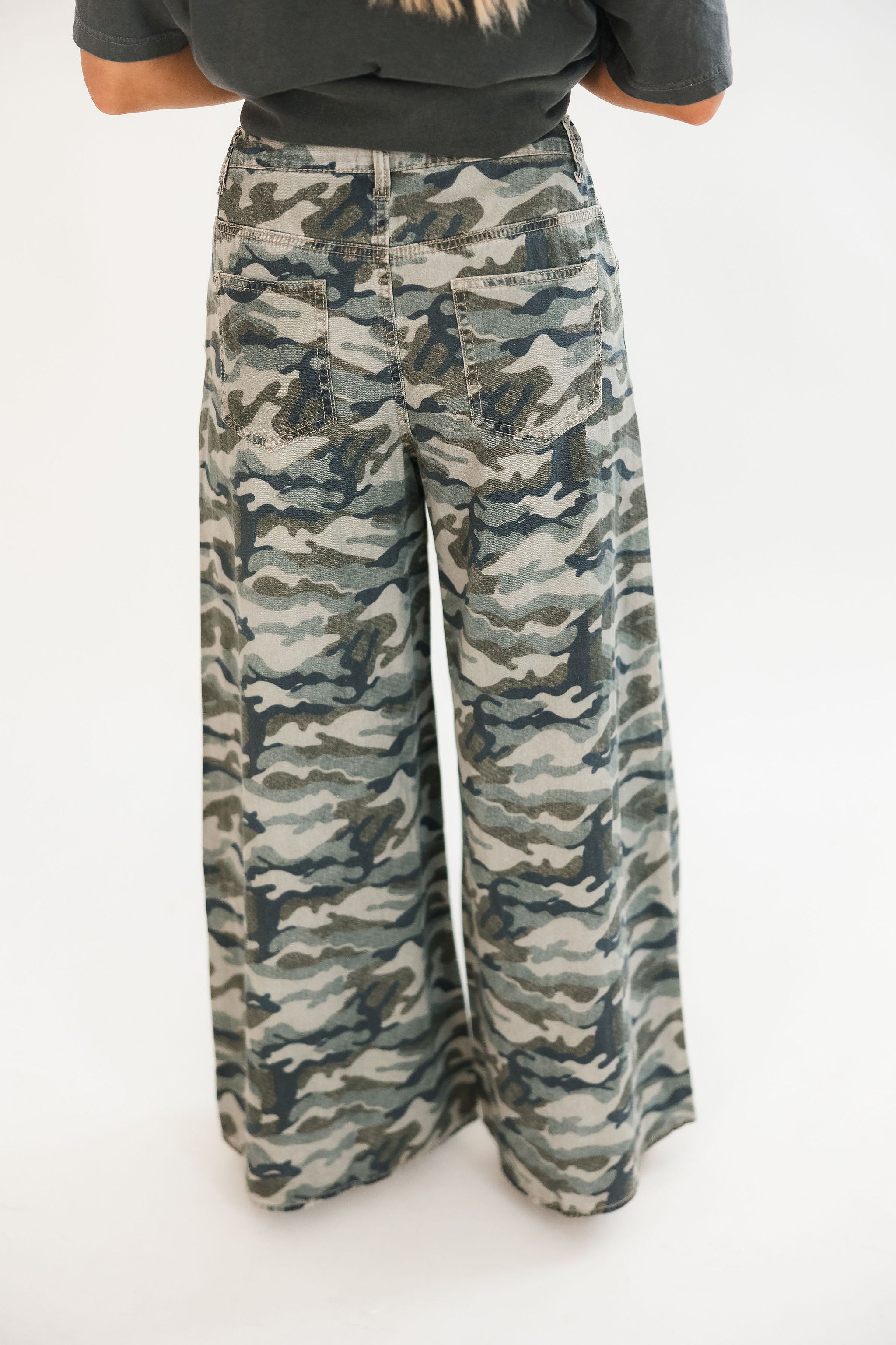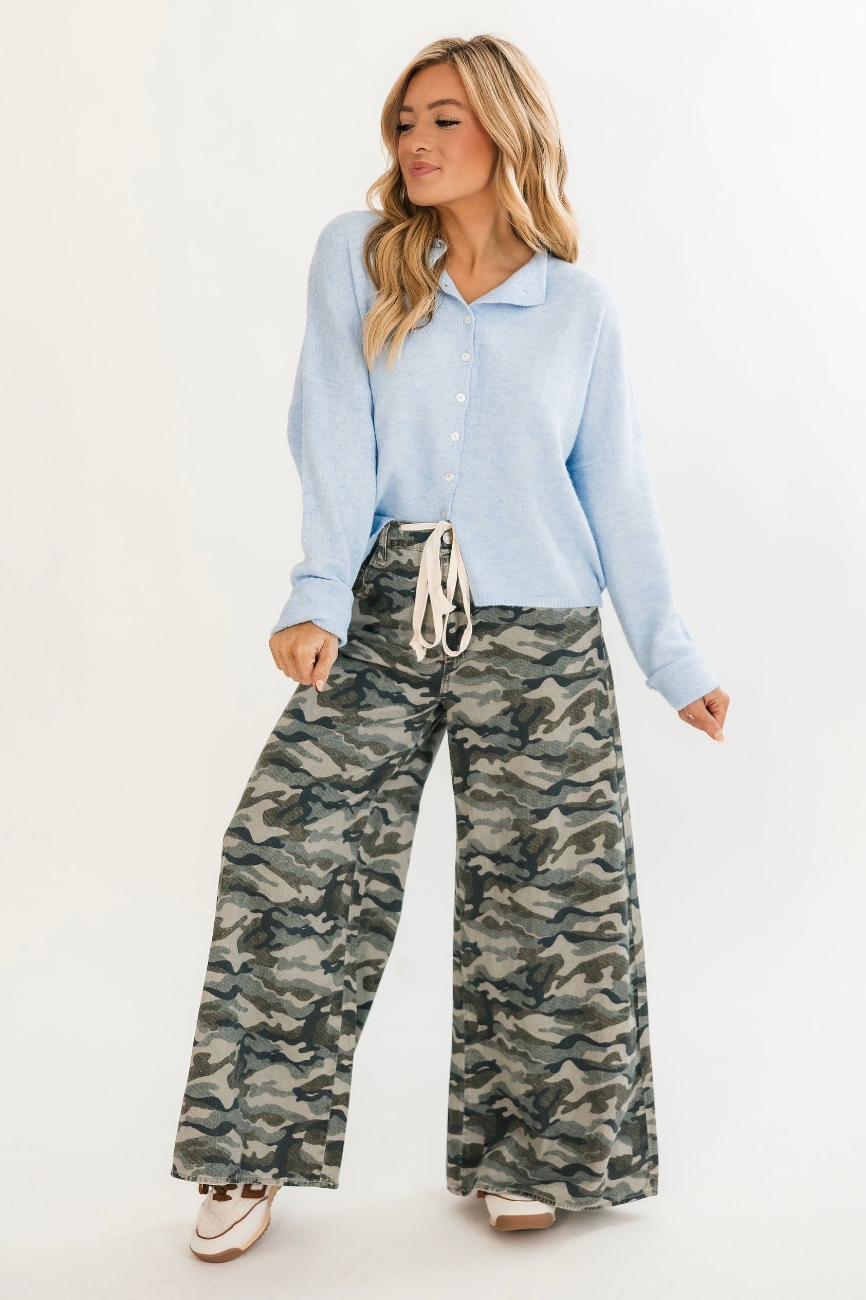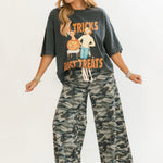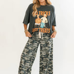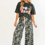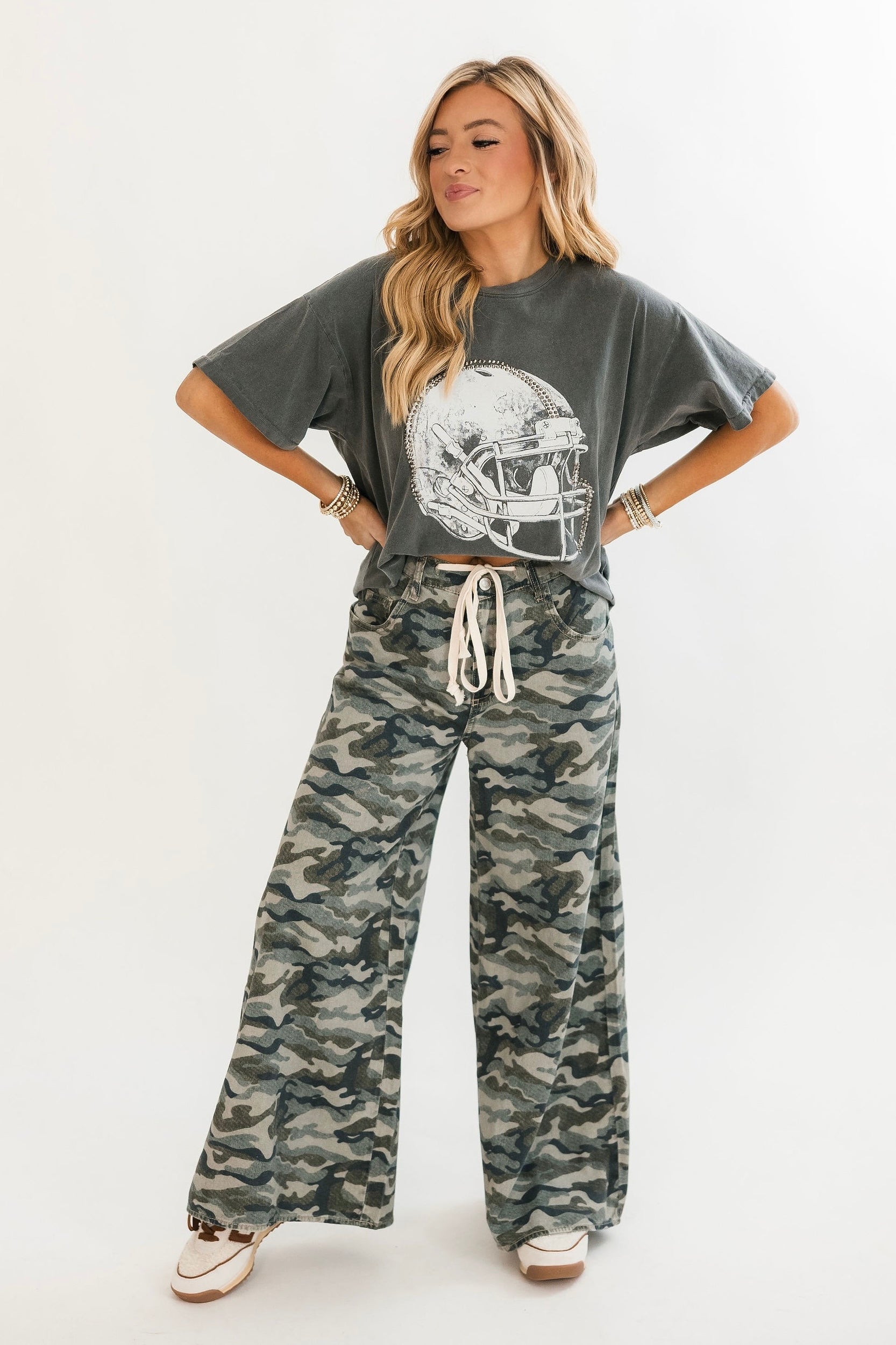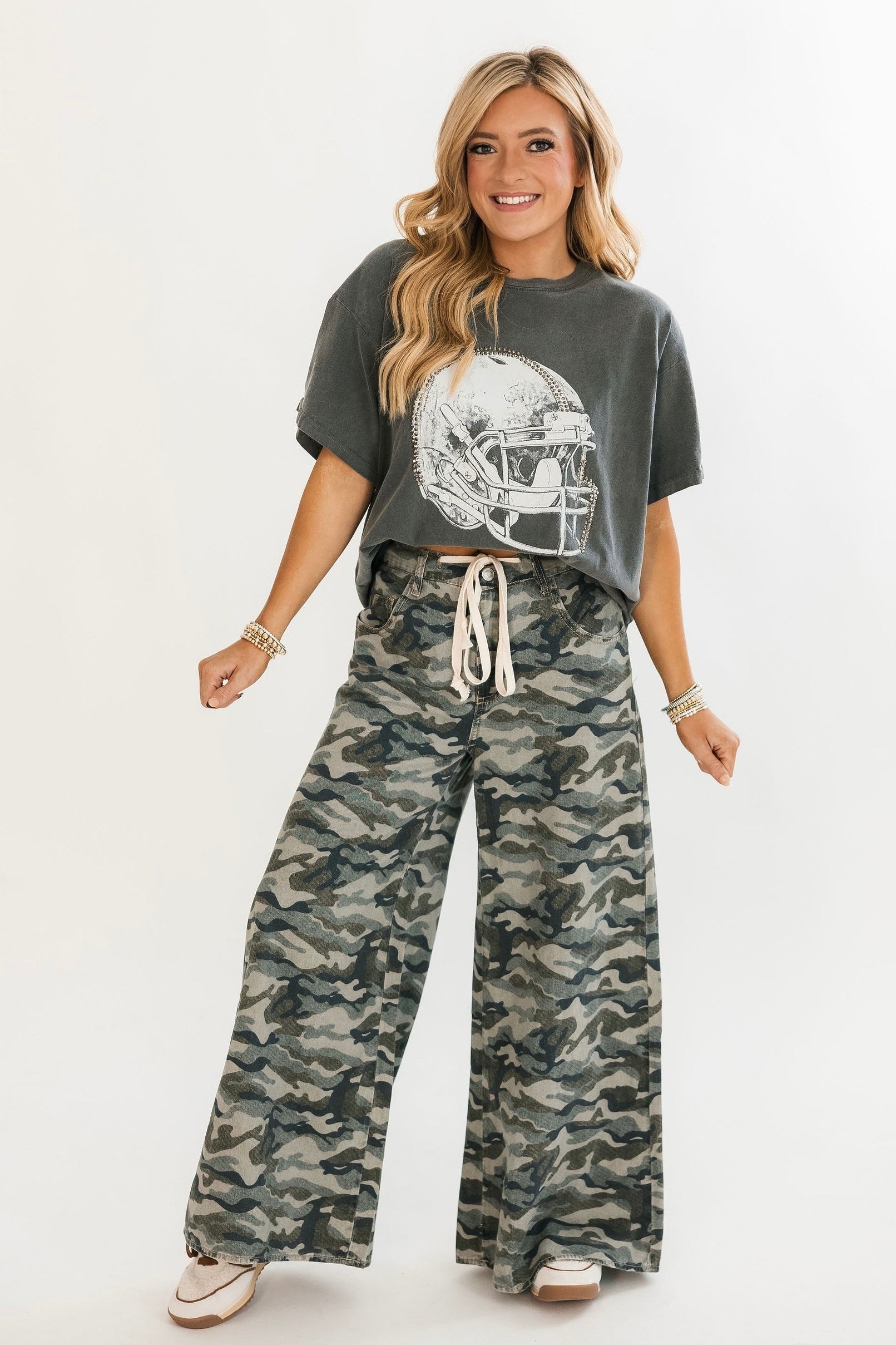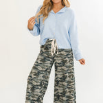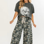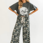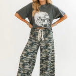 Step into bold, laid-back style with the Trailblazer Pants In Camo. Designed with a relaxed wide-leg silhouette and a shoestring belt tie for a custom fit, these pants bring a cool, effortless edge to any outfit. The classic camo print makes them an easy go-to for casual days or styled-up streetwear looks. Lexi is wearing a small.
