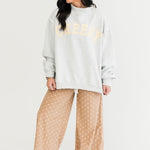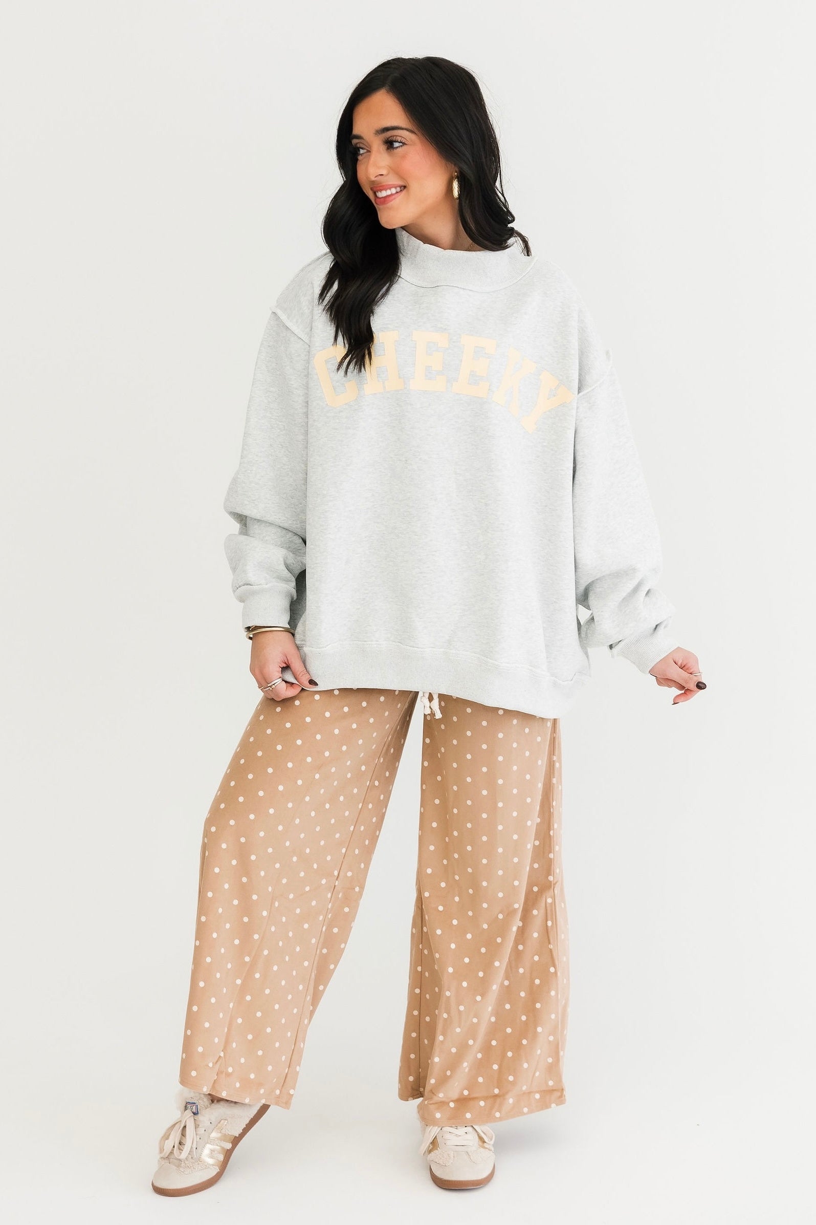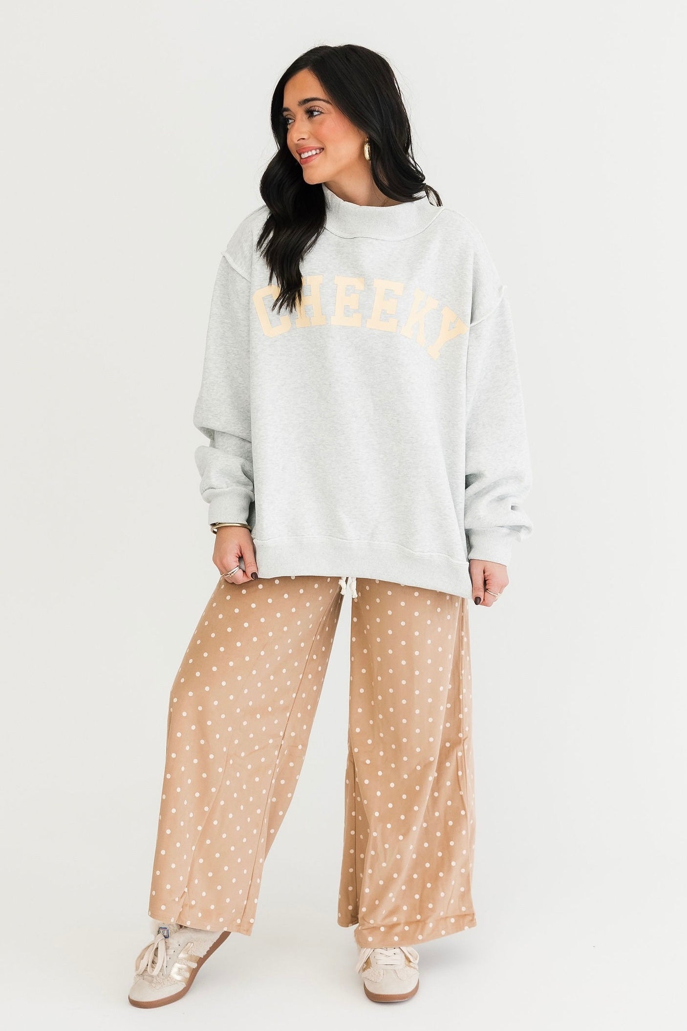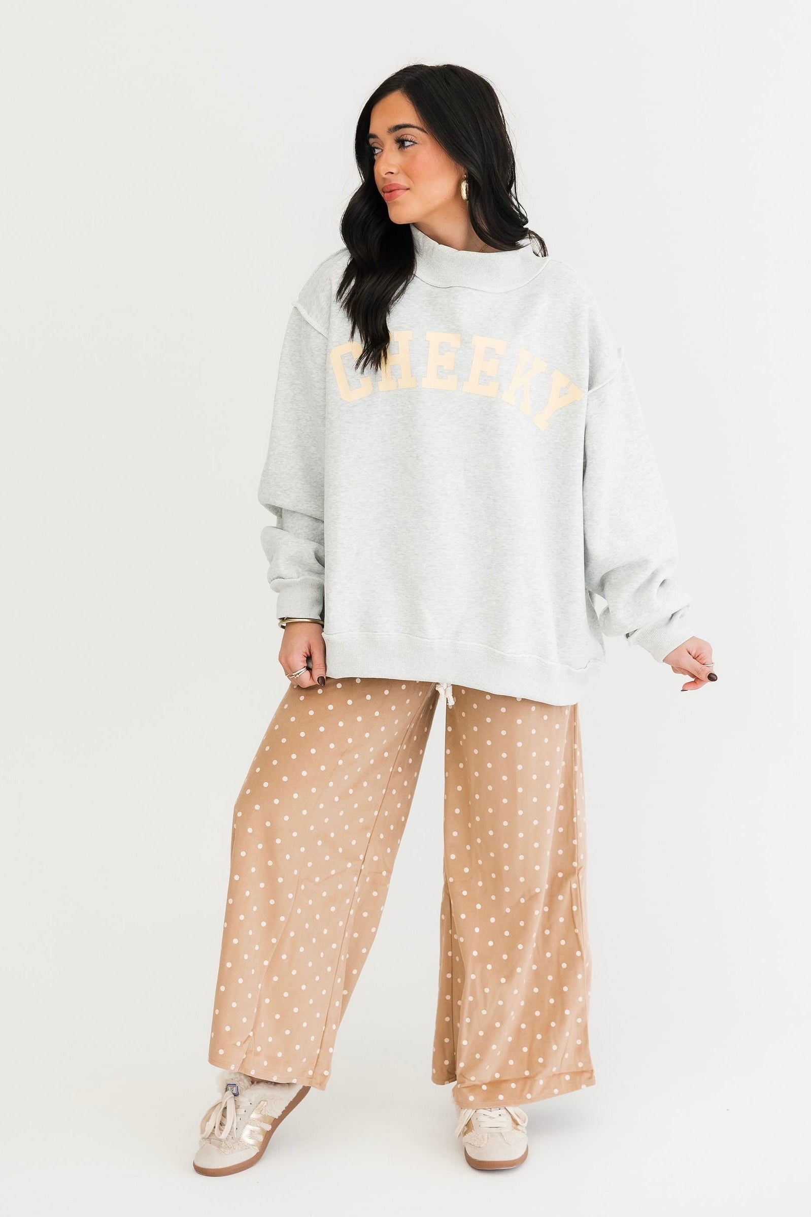 Step into bold, laid-back style with the Trailblazer Pants In Mocha Polka Dot. Designed with a relaxed wide-leg silhouette and a shoestring belt tie for a custom fit, these pants bring a cool, effortless edge to any outfit. The classic polka dots print makes them a fun pant to style. Sage is wearing a small.