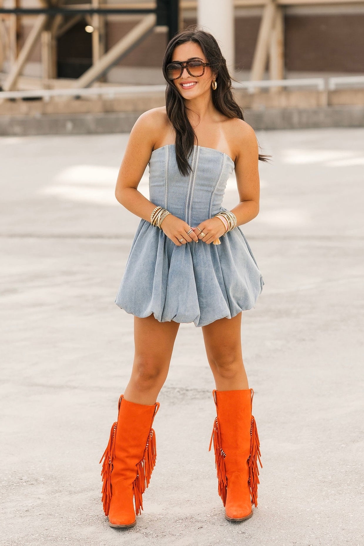Introducing 'Twister' - the boot that's ready to whirl you away. With its playful fringe and eye-catching design, these boots are guaranteed to turn heads. Embrace your inner free spirit and let the good times roll.