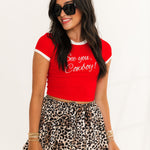 Turn heads with this playful satin mini skirt, featuring a bold leopard print and a fun bubble hem. Lightweight with a subtle shine, it’s made for dressing up or keeping casual. The flattering mini length and comfy waistband make it an easy choice for nights out or standout everyday looks. Sage is wearing a small.