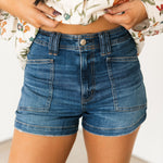 The Valley Girl High Rise Shorts in Manhattan are a must-add to your wardrobe! Featuring a flattering high-waisted fit, dark wash, and front patch pockets for a standout touch, they’re perfect for all your summer styling.