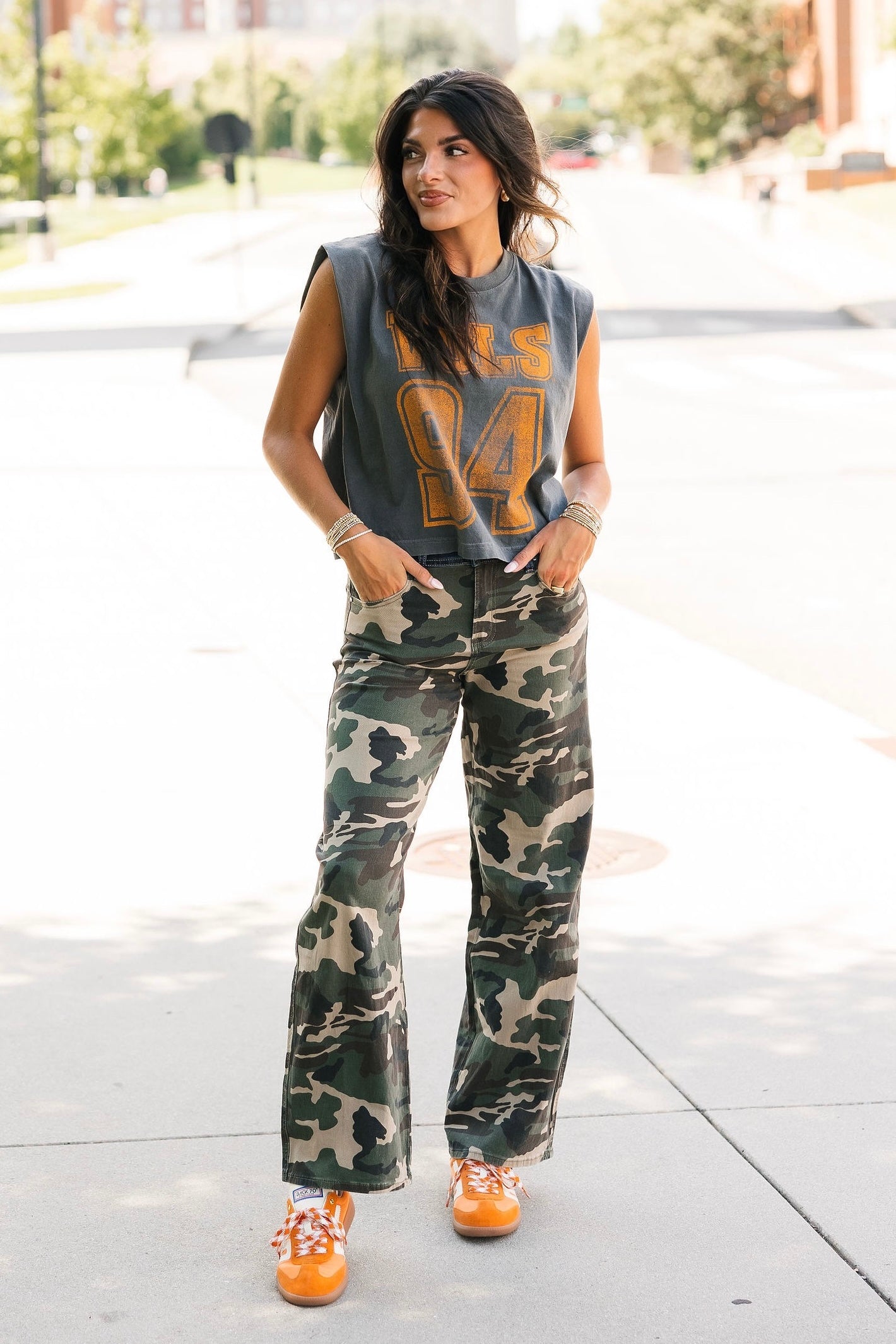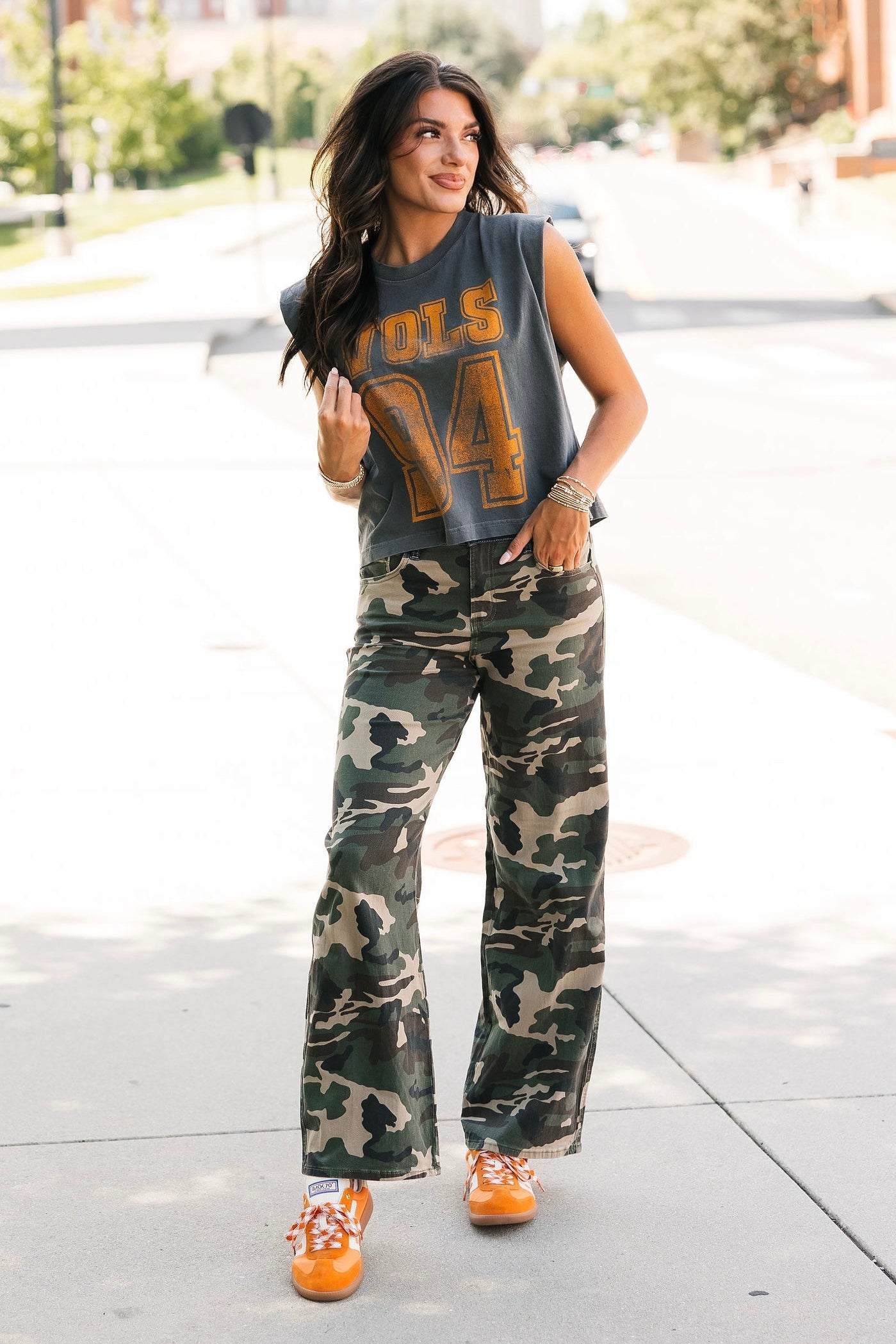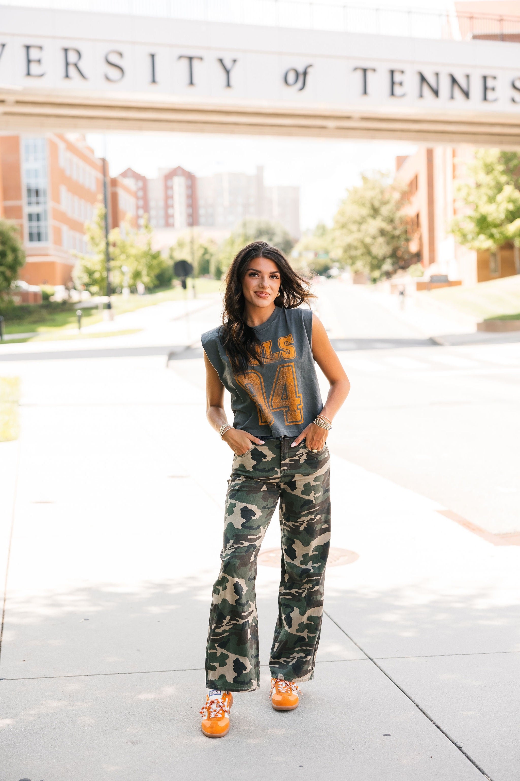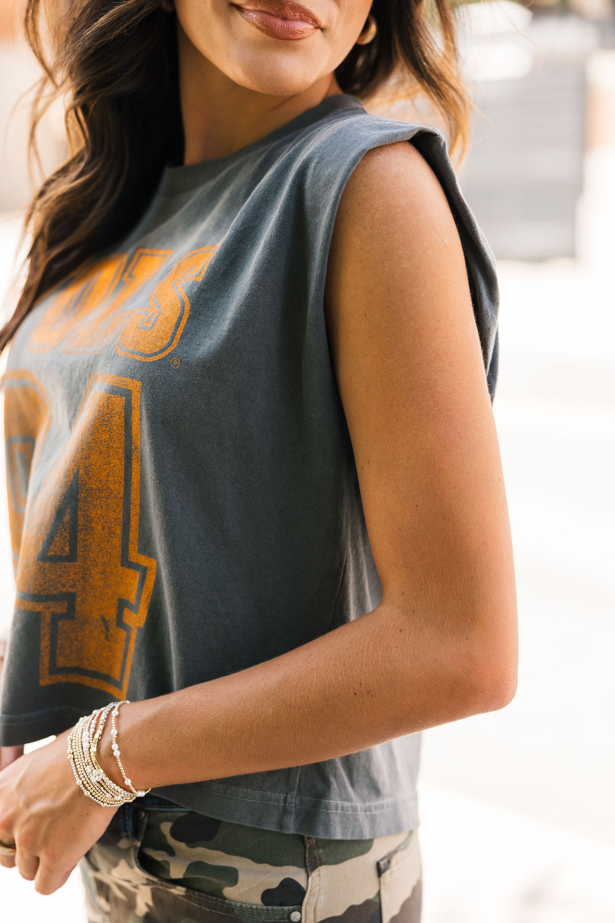 Keep it cool and classic with the Vols 94 Charcoal Tank. Featuring a relaxed, boxy fit and muscle tank cut, this sleeveless staple brings vintage vibes with modern edge. Perfect for sunny game days or laid-back weekends repping your team. Lexi is wearing a small. Harli is wearing a medium.
