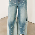 Washed Bleached Wide Leg Denim Jeans