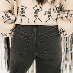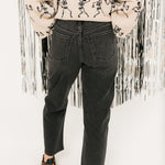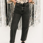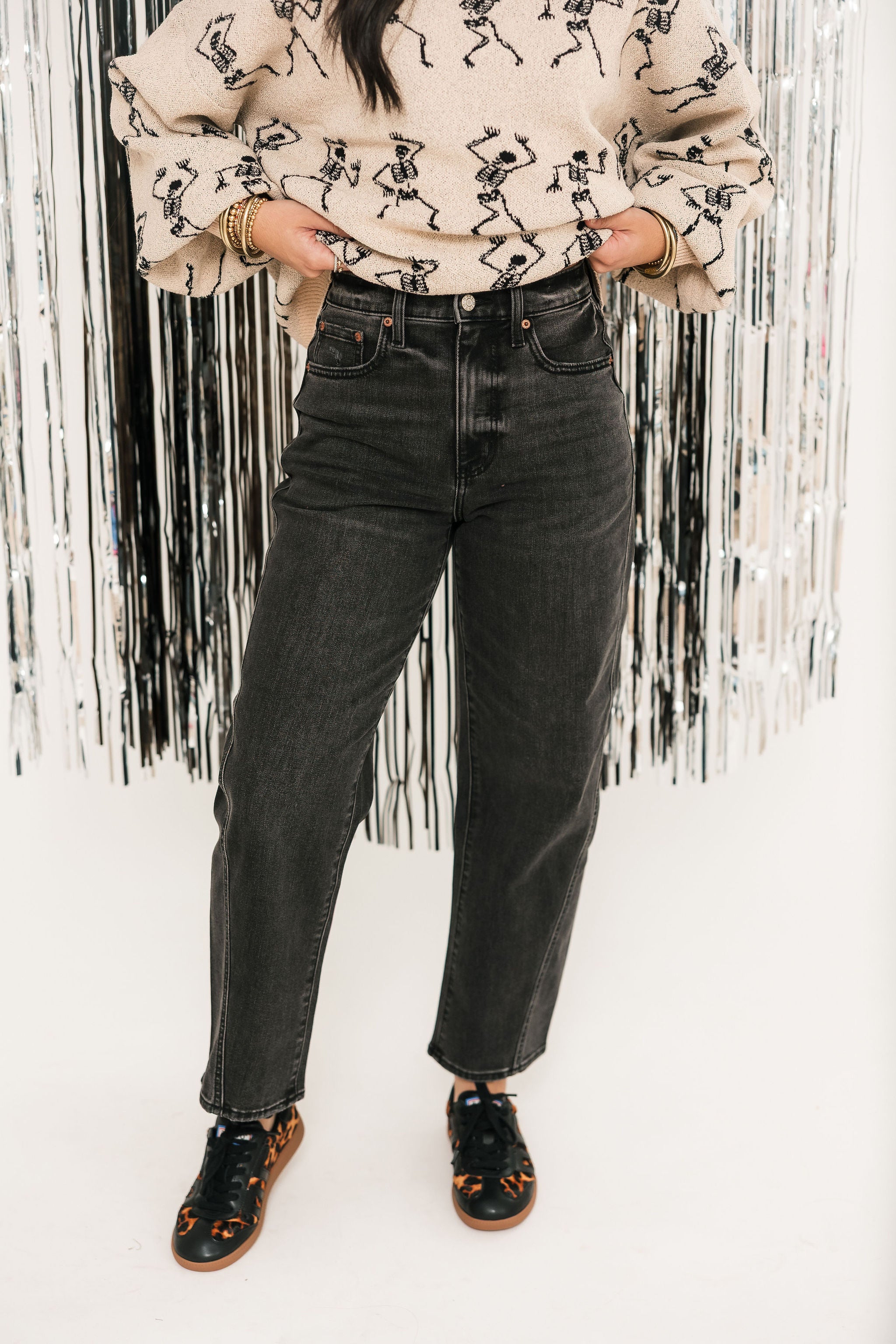 The Westward in Night Life is a high rise jean with a barrel leg silhouette. Featuring a cinched waist, bowed leg, and slightly tapered ankle against a faded black wash, this jean is as versatile as it is flattering.