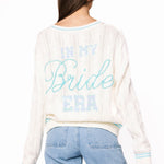 White & Blue 'In My Bride Era' Sequin & Pearl Button Up Cardigan | Queen Of Sparkles