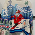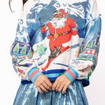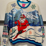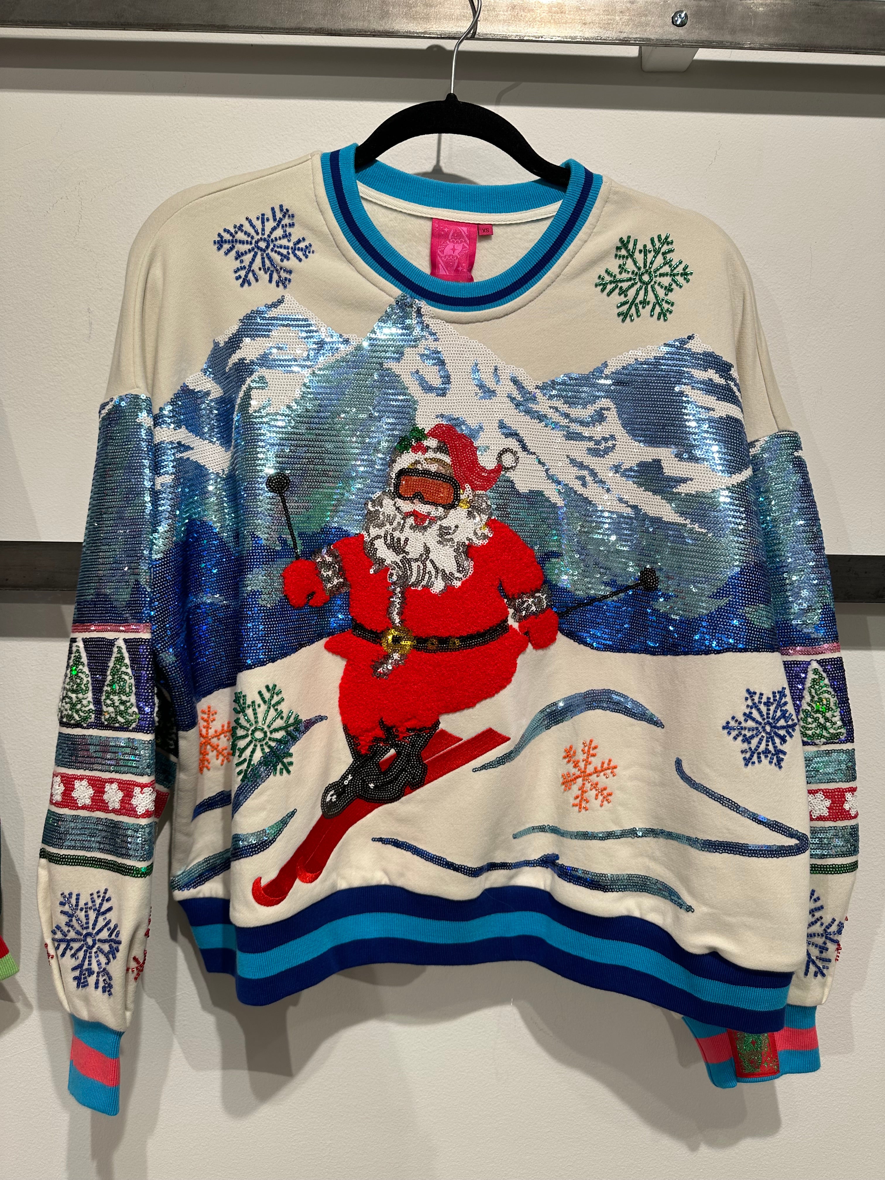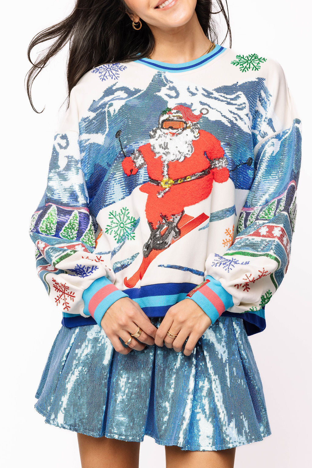 Queen Of Sparkles White & Blue Vintage Skiing Santa Sweatshirt