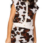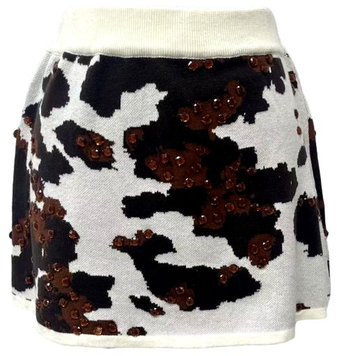 Queen Of Sparkles White & Brown Sequin Cow Print Skirt