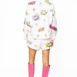 White Mahjong Icon Rainbow Trim Short | Queen Of Sparkles