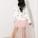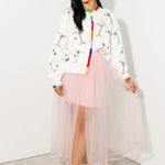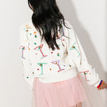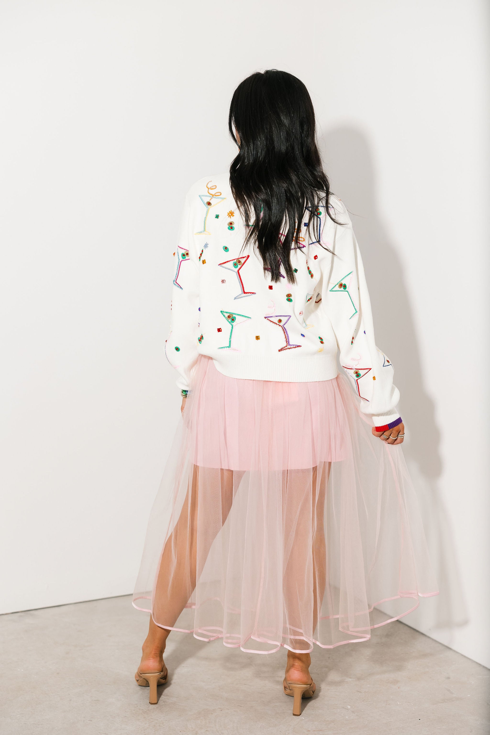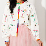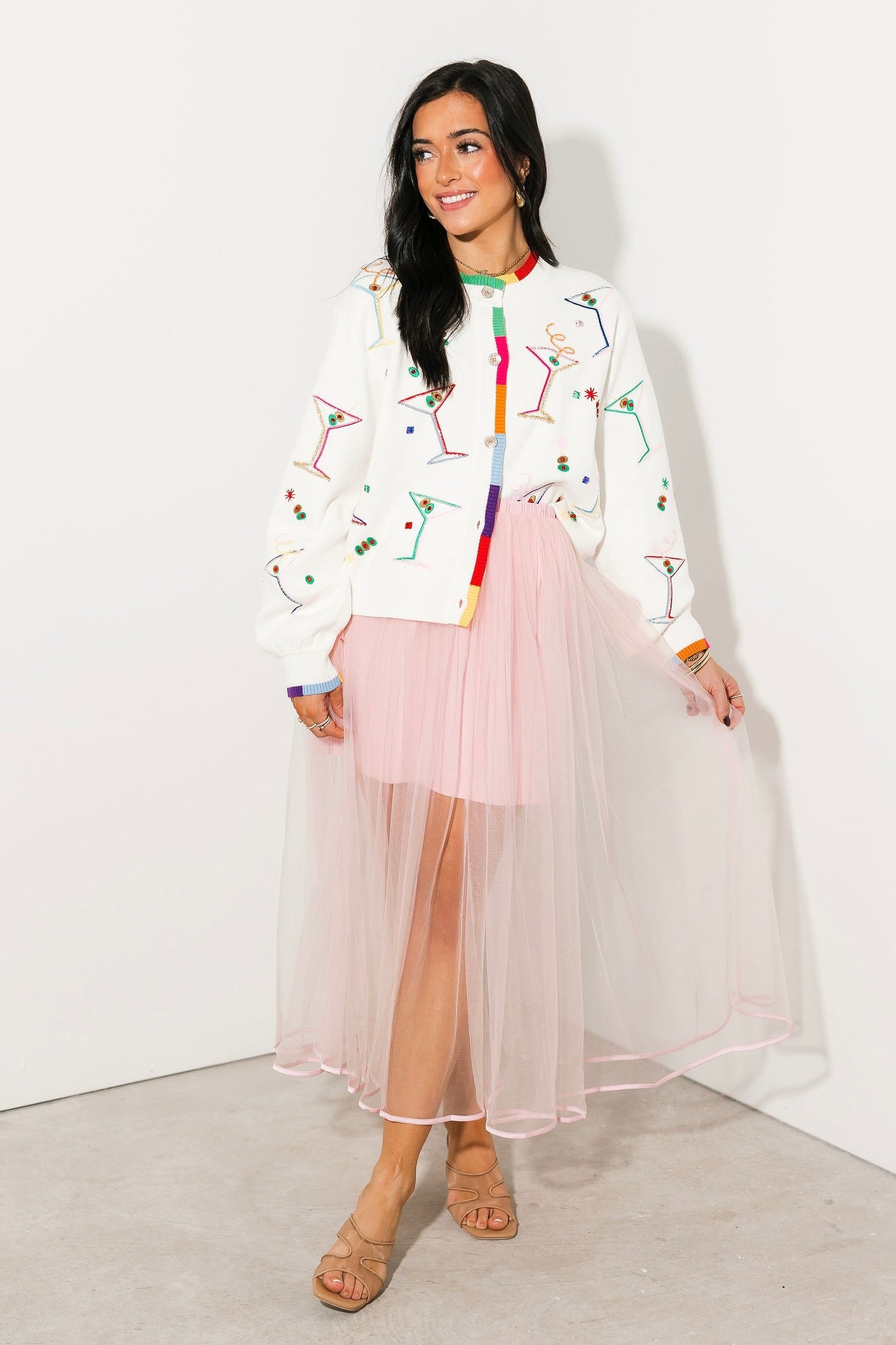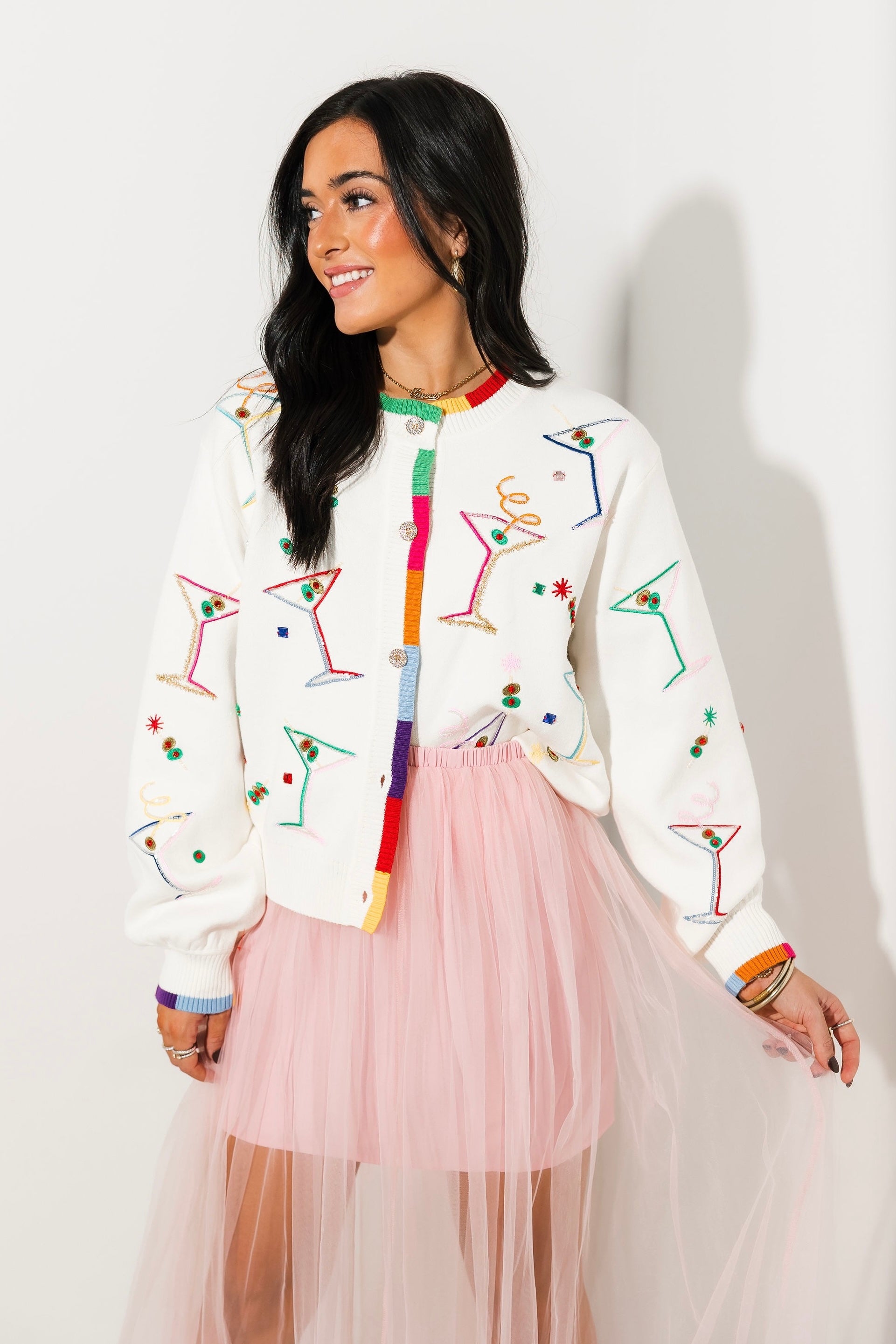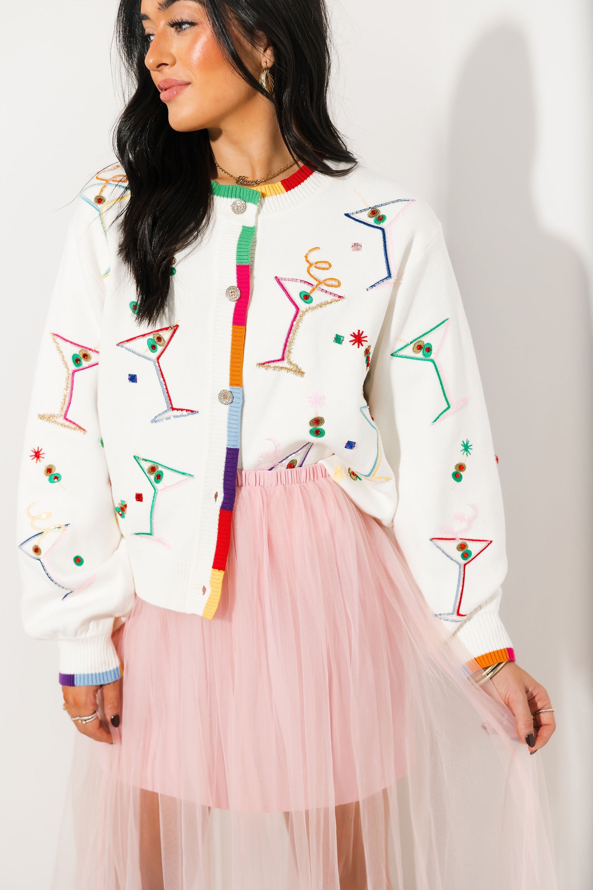 White Multi Cosmo & Martini Button Up Cardigan W/ Rainbow Trim | Queen Of Sparkles
