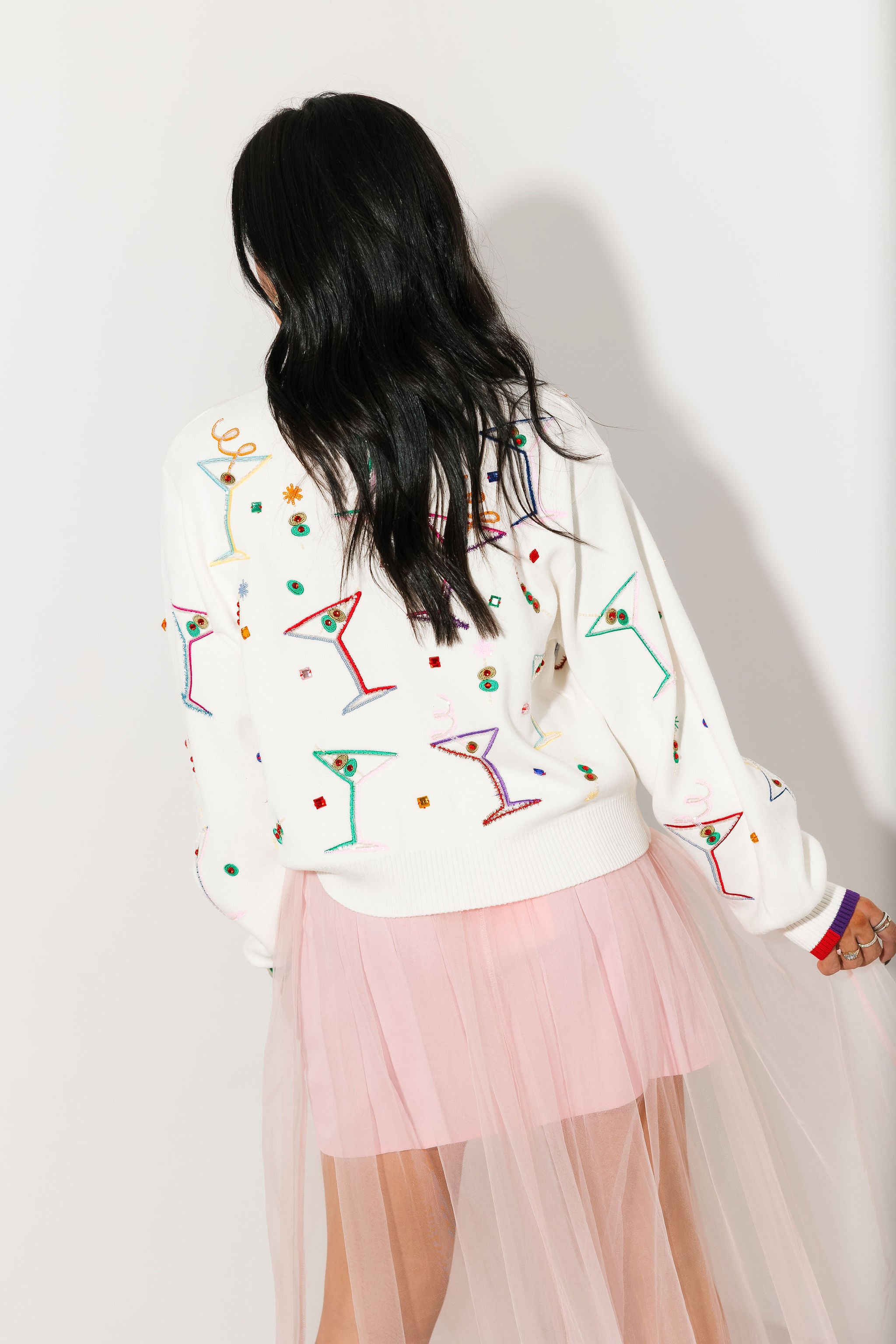 - Why We ❤ It: Colorful and playful—this button-up cardigan combines sparkling martini graphics with cheerful rainbow trim for a fun, festive vibe that’s perfect for celebrating in style.