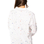 Shine bright in the Queen Of Sparkles White Rhinestone Cotton Button Up Collared Top. With a relaxed fit, classic collar, and colorful rhinestone embellishments, this top effortlessly combines comfort and glam. Pair it with jeans for a standout casual look or dress it up with a skirt or trousers for parties and special events. Perfect for anyone who loves to sparkle.