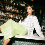 White Rhinestone Cotton Button Up Collared Top | Queen Of Sparkles