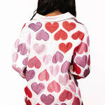 White Multi Rhinestone Hearts Button Up Cotton Top | Queen Of Sparkles
