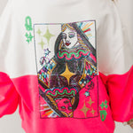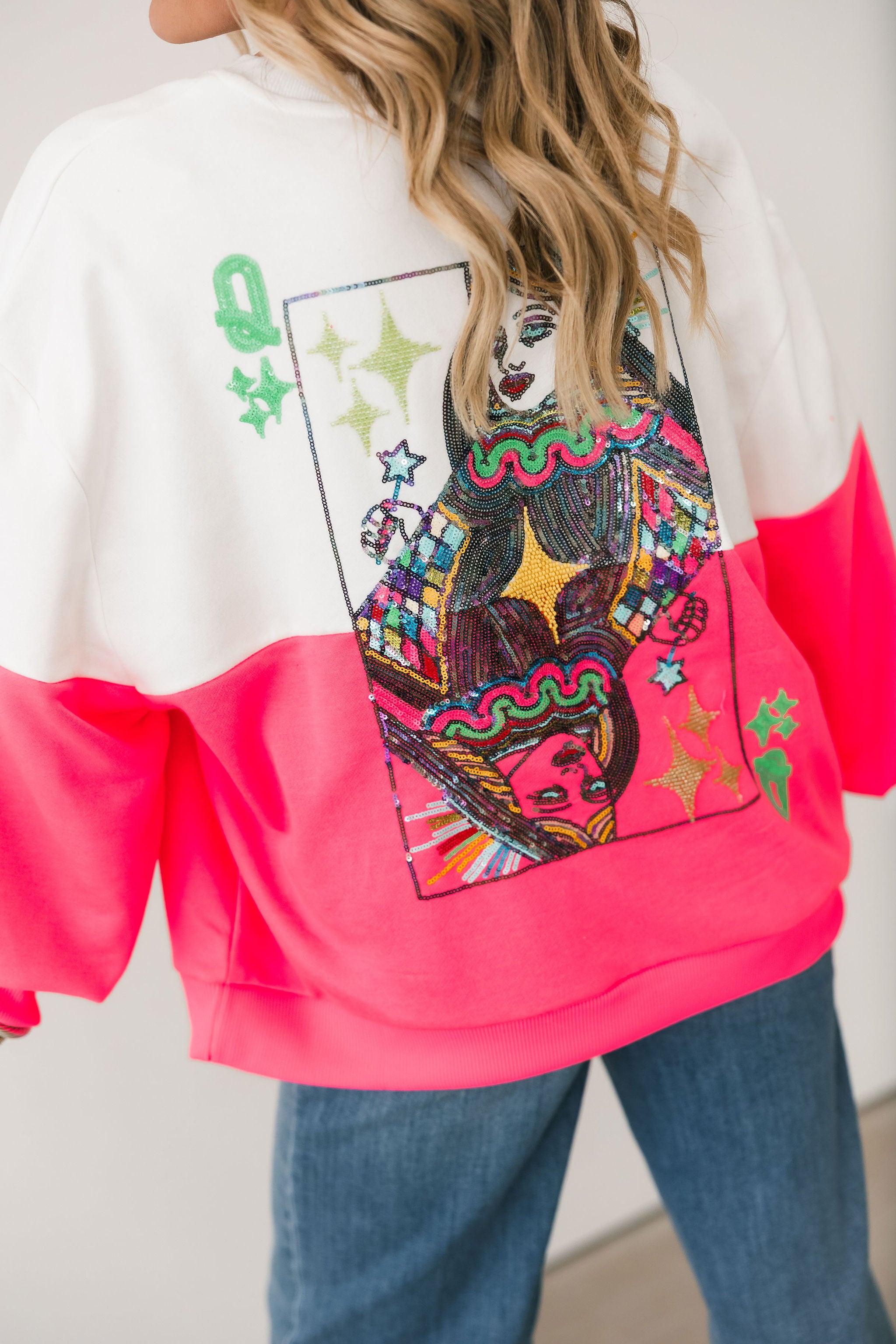 Queen Of Sparkles White & Neon Pink Colorblock QOS Logo Sweatshirt