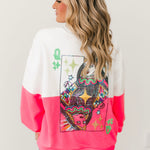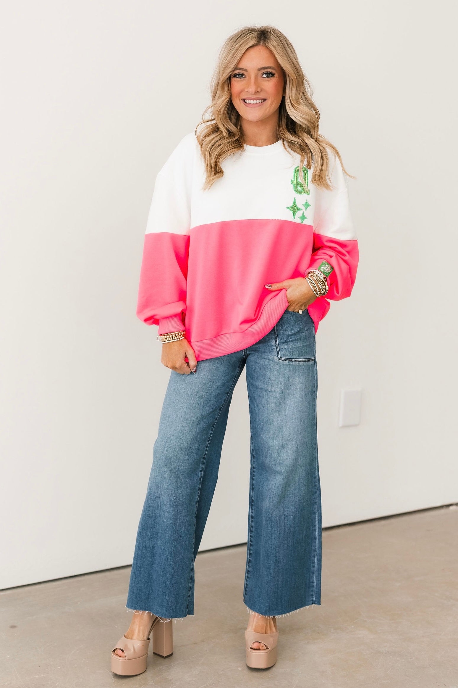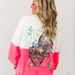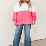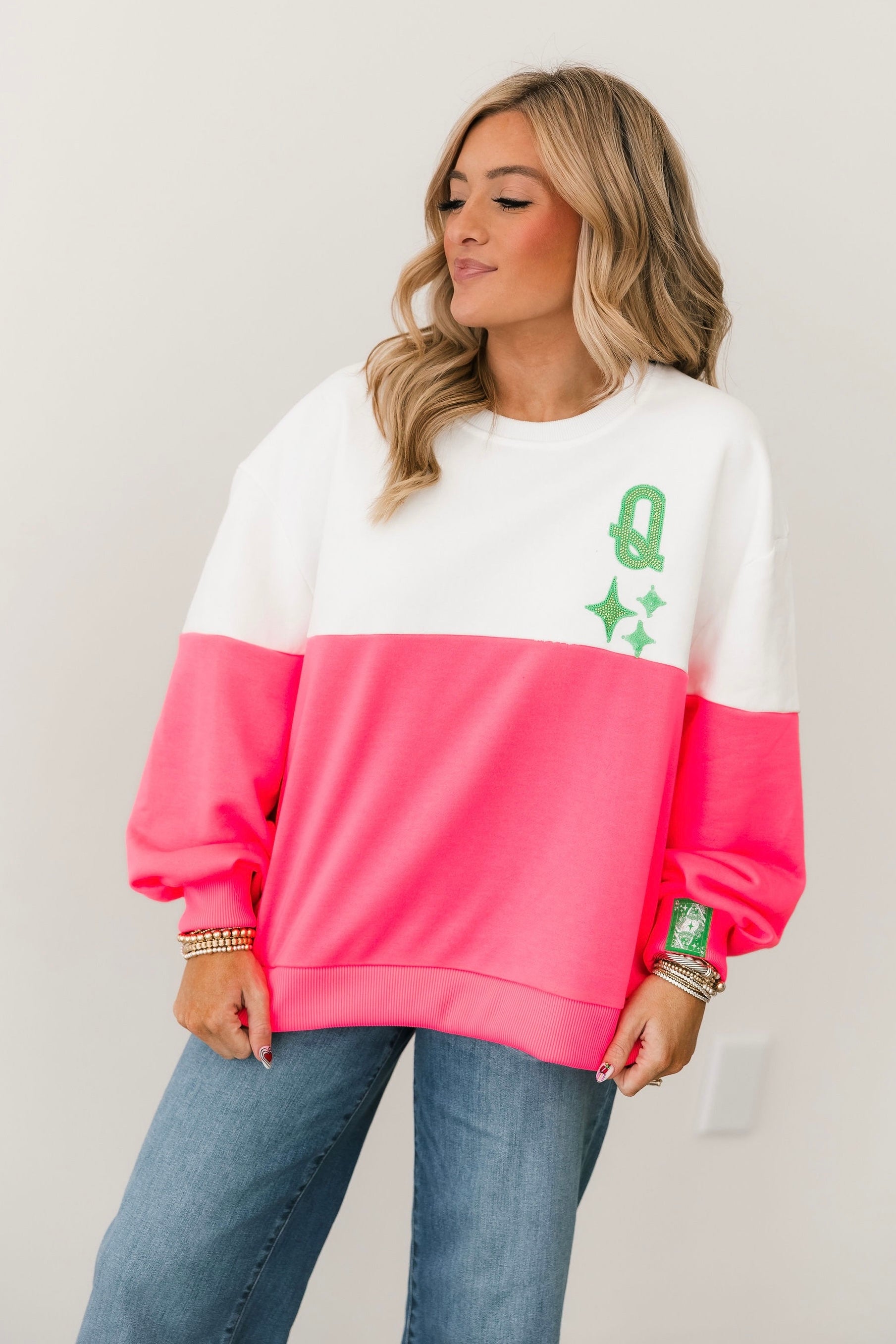 White & Neon Pink Colorblock QOS Logo Sweatshirt | Queen Of Sparkles
