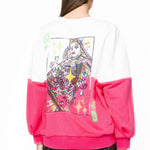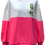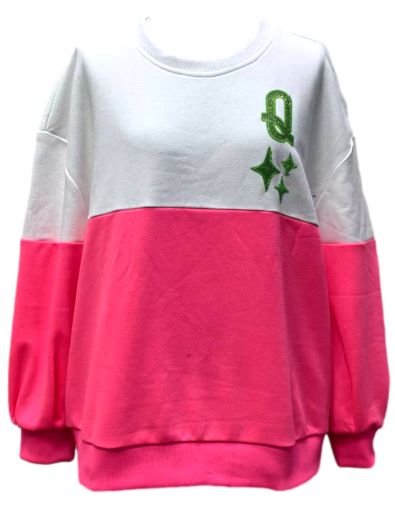 The Queen Of Sparkles White & Neon Pink Colorblock QOS Logo Sweatshirt brings playful energy to your everyday style. Featuring a classic crewneck, long sleeves, and a relaxed fit, it’s designed for comfort with a trendy twist. The white and neon pink colorblock design is finished with the signature QOS logo for a standout look.
