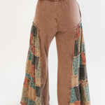 Breezy and effortless, these flowy pants feature a wide-leg silhouette with unique patched detailing along the sides for a boho-inspired look. The elastic waistband keeps them comfortable, making them perfect for everything from lounging to styling with a chic top. Sage is wearing a small.