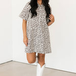 The Wild Side Mini Dress features a relaxed fit with a front button closure, short sleeves, and a classic collar. Easy and versatile, this dress is perfect for teachers, casual office days, weekend outings, brunch with friends, and everything in between. Sage is wearing a small.