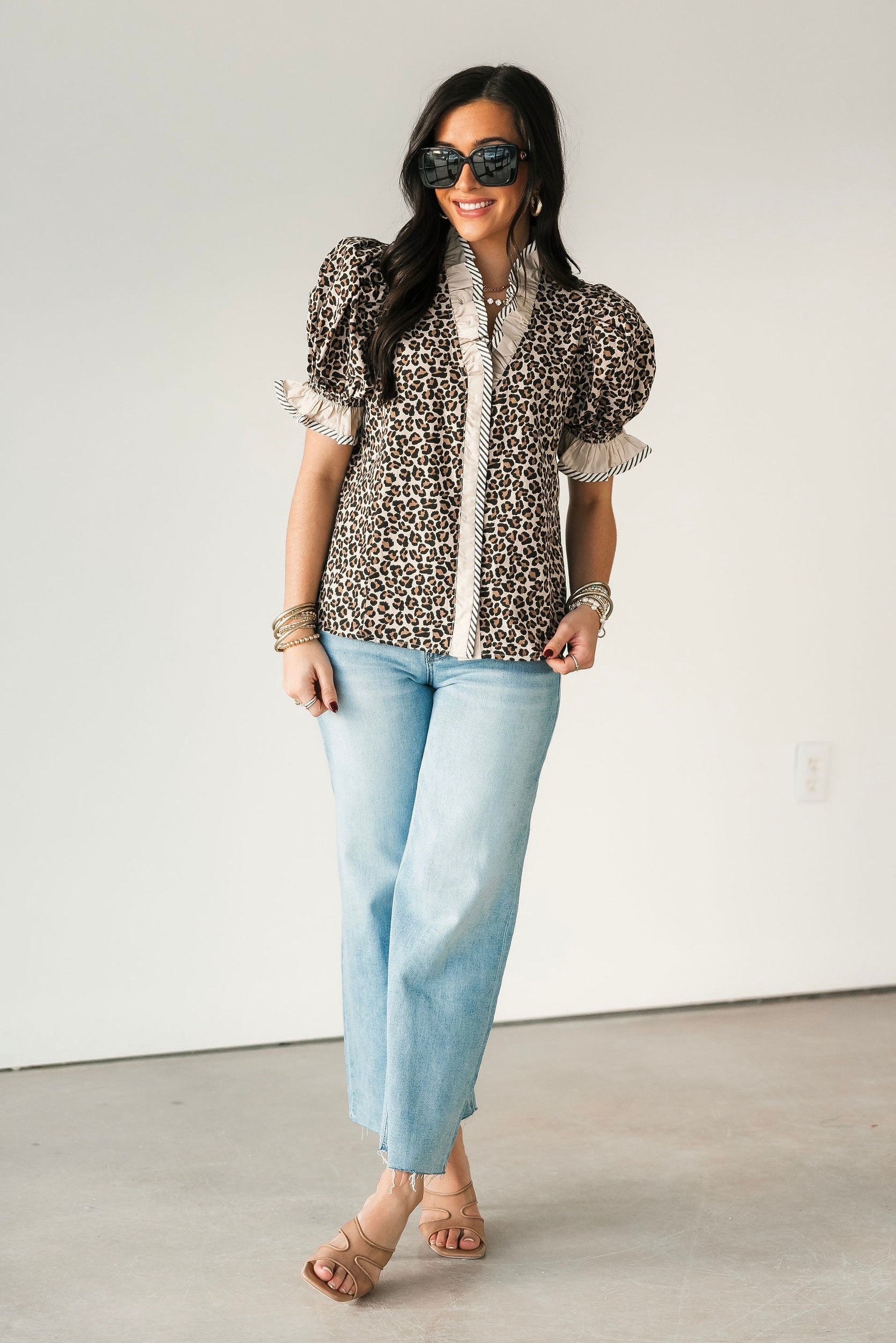 - Why We ❤ It: A bold statement with a touch of sweetness — the mix of leopard print, puff sleeves, and ruffle details makes this top effortlessly fun and stylish for everyday wear or a night out.