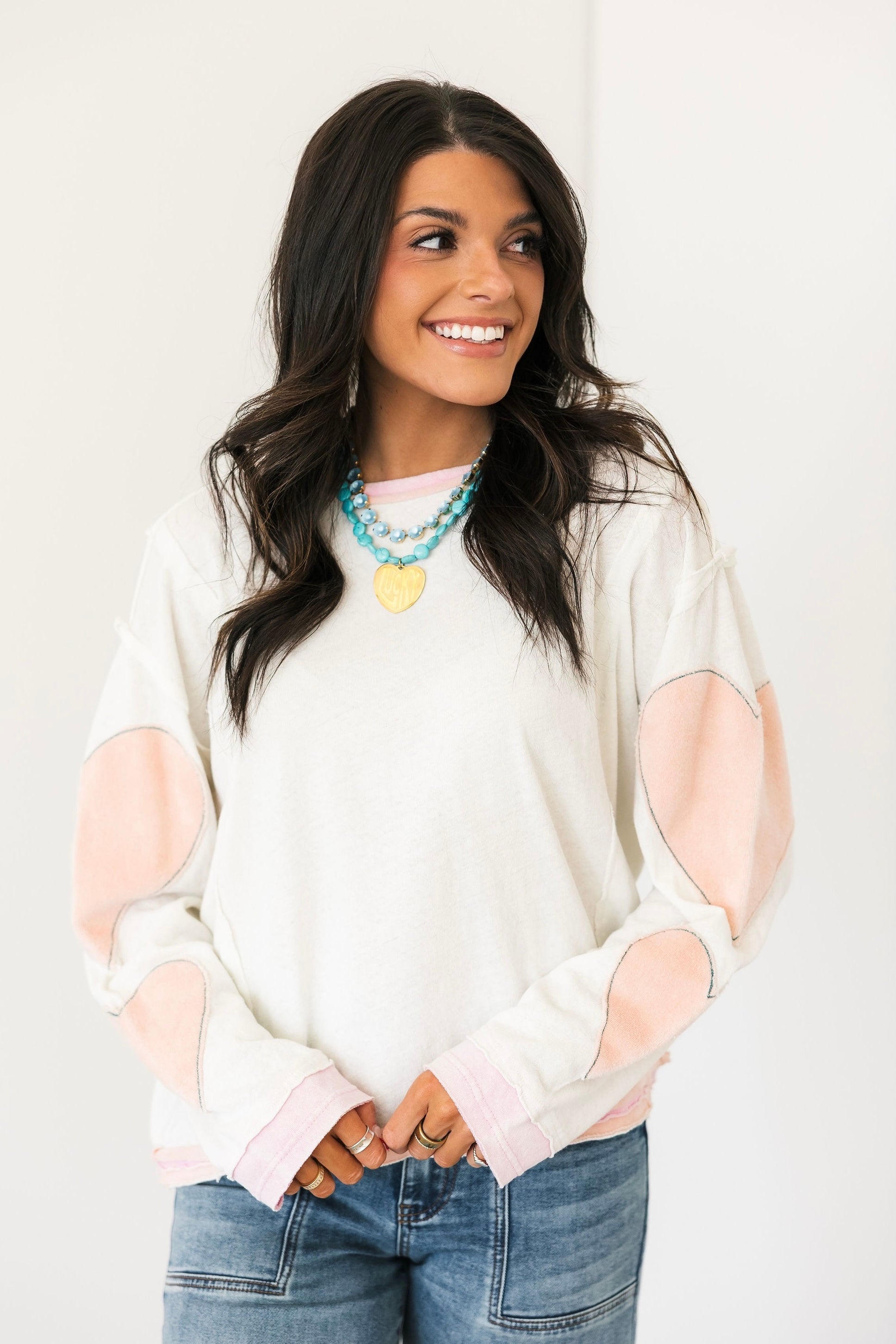 Top off your tee collection with this long-sleeve from our We The Free collection, featured in a soft cotton fabrication and slouchy silhouette with oversized star detail and raw trim throughout. Harli is wearing a small.